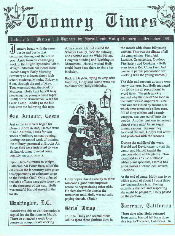 To view the original scanned "Toomey Times" Christmas Newsletter, click on the scanned pages below: